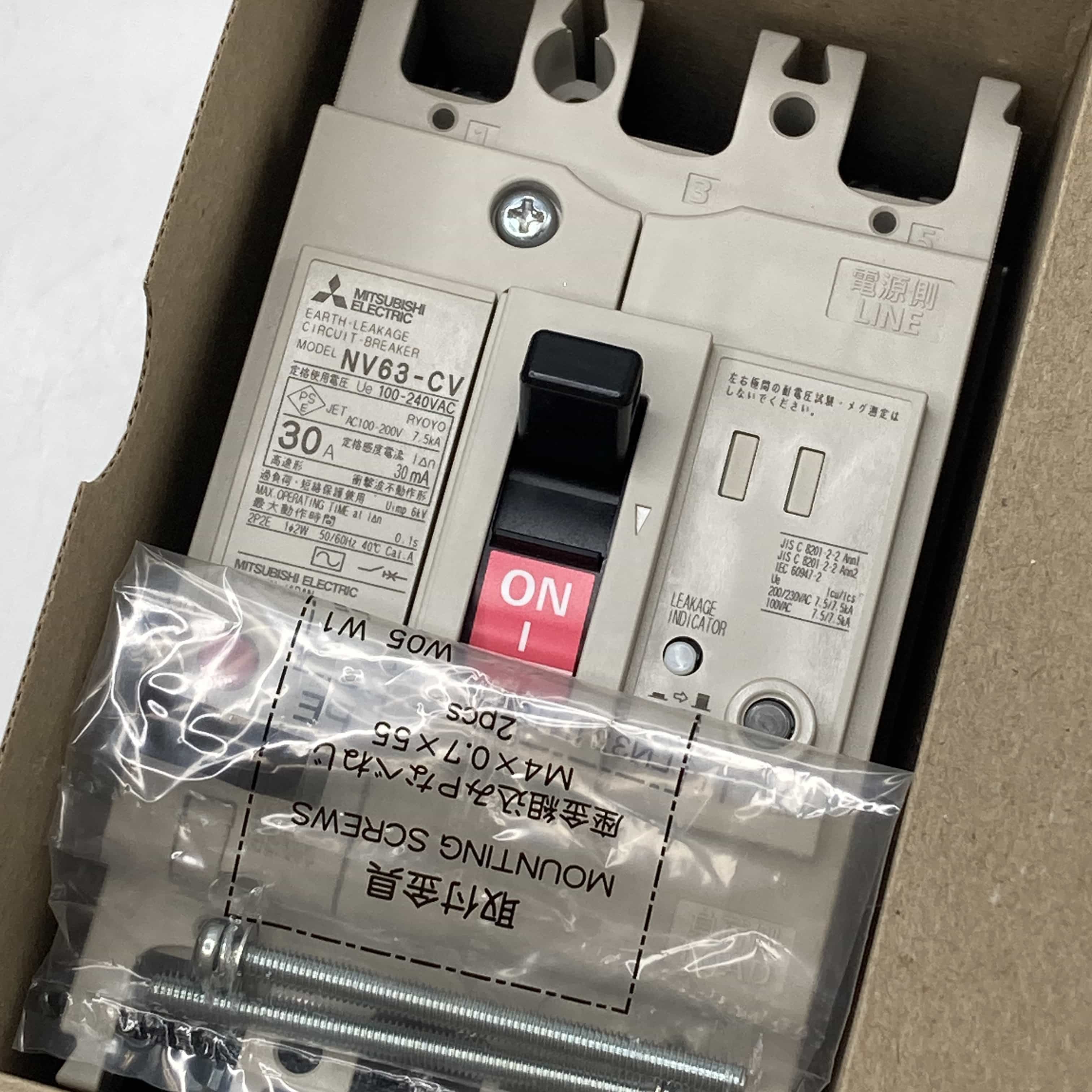 NV63-CV 2P 30A 100-240VAC 30mA 2022年製 漏電遮断器 三菱電機