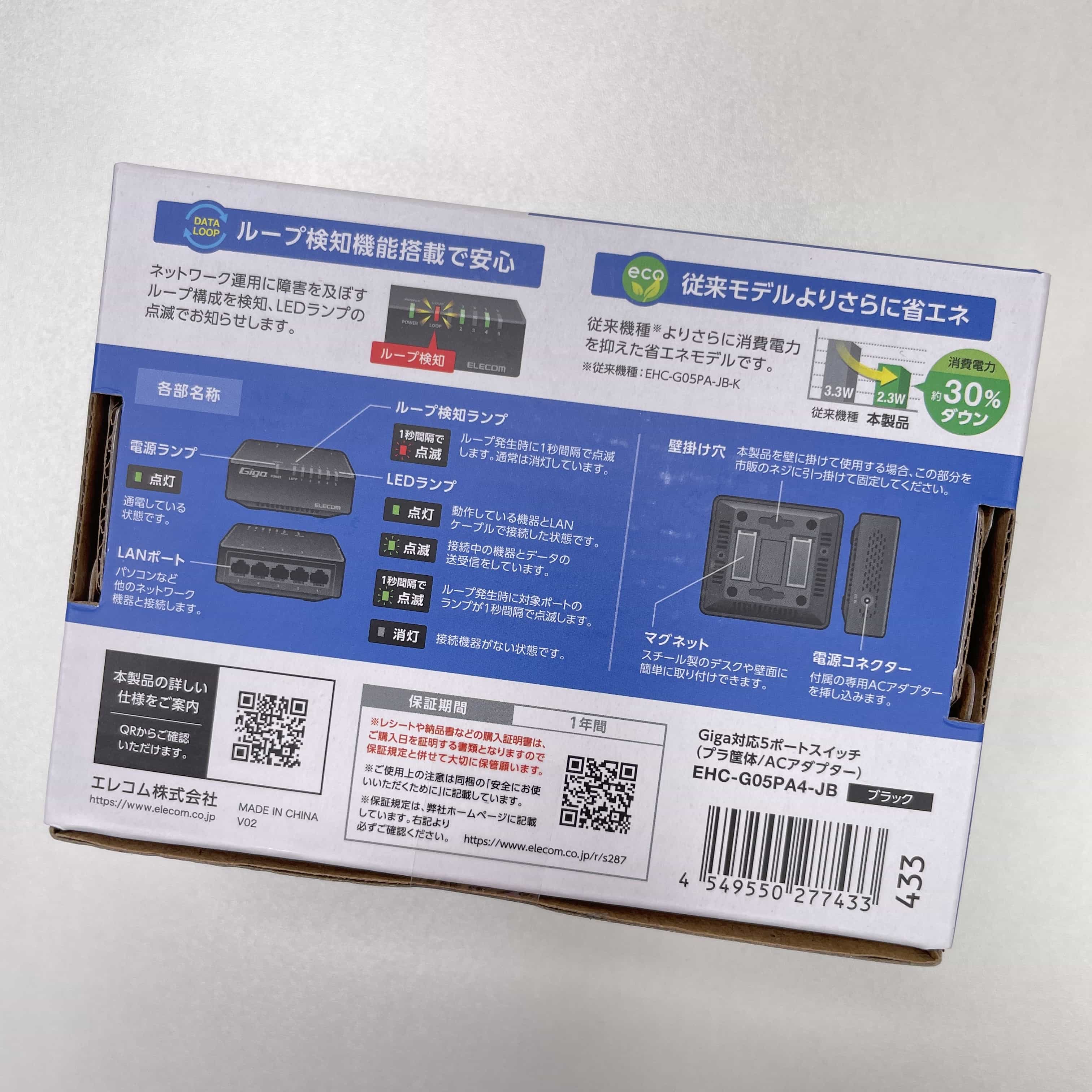 EHC-G05PA4-JB PoEスイッチングハブ ELECOM