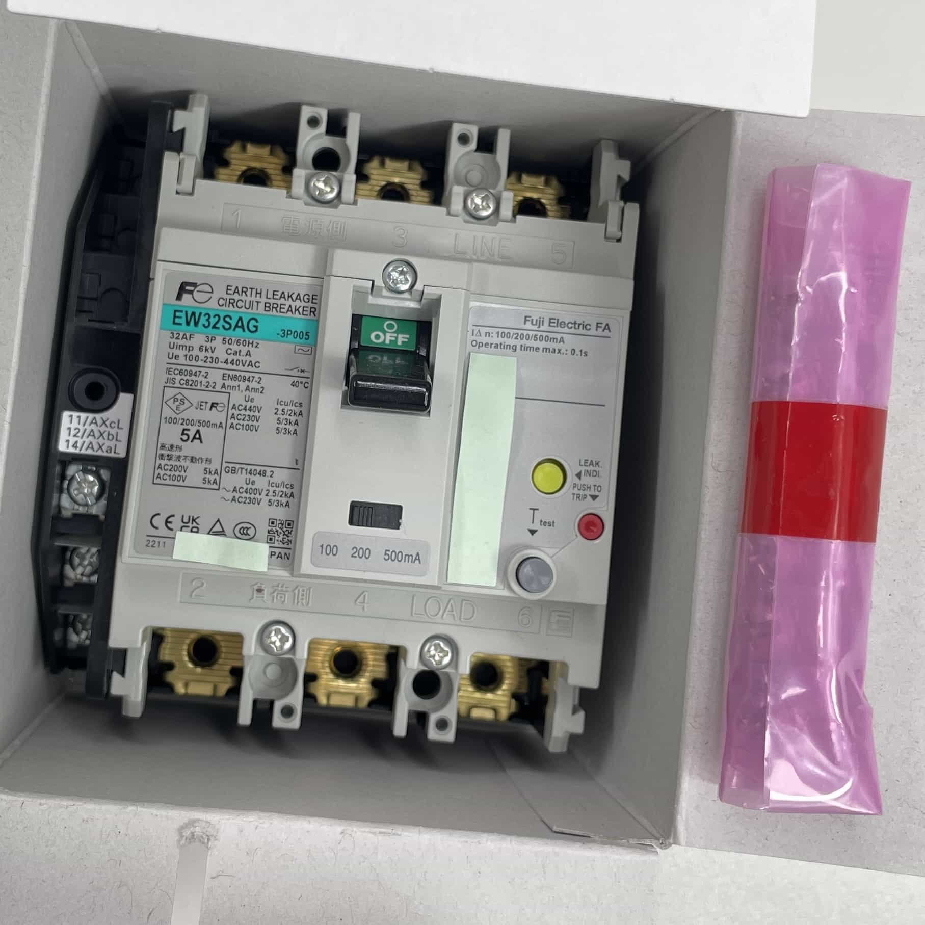 EW32SAG 3P 5A 箱潰れ有/箱汚れ有/欠損有/カバー無 漏電遮断器 富士電機